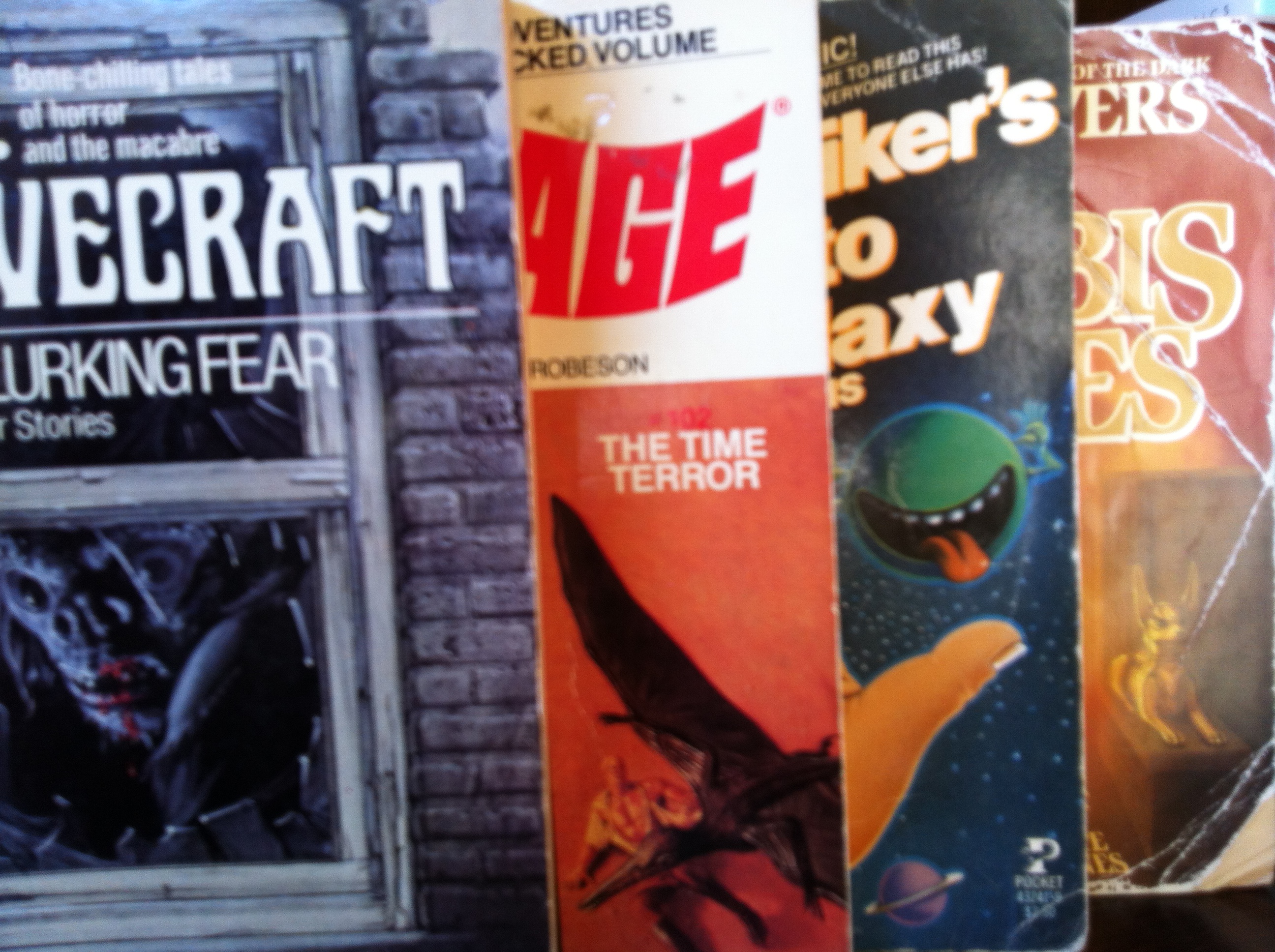 Last post, I showed a picture of some books from my early reading days that I found in my parents’ basement. They’re only a smattering–the ones that never were lost/loaned/stolen like many others. They represent the tip of my sci-fi/fantasy boyhood iceberg.